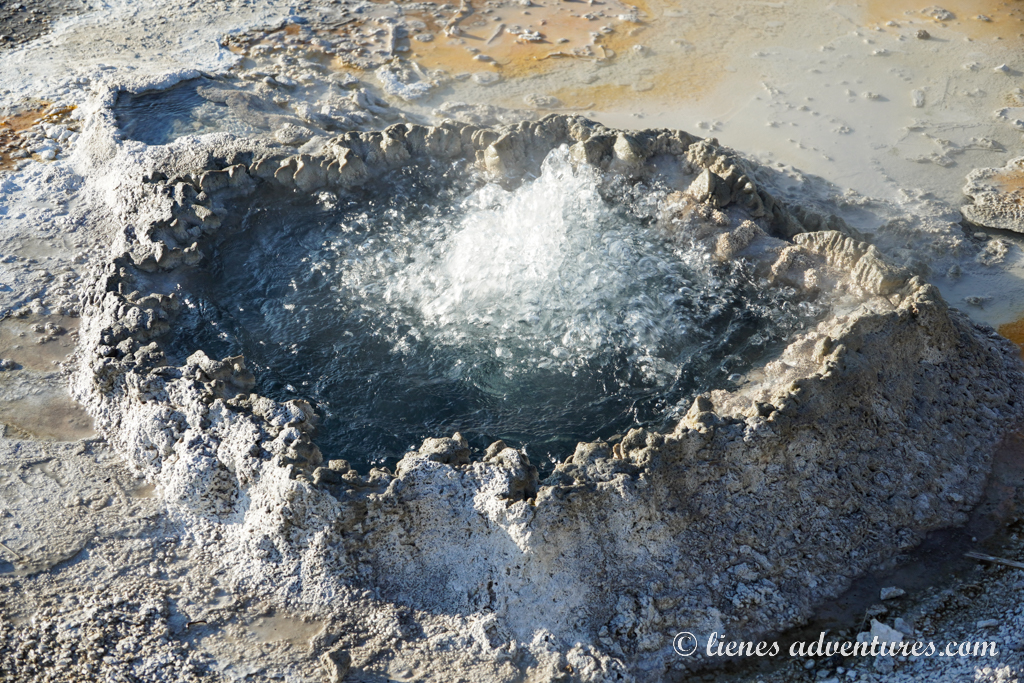 Once done exploring the Porcelain Basin, we headed farther into the park to see all the features of the Back Basin. It got more wooded with features scattered throughout the area. This was probably one of the reasons why all the crowds disappeared after we left the Porcelain Basin – people just did not bother with longer walks and saw only what was easily accessible right there near the parking lot. This worked in our favor, and we enjoyed our solitude. It felt like we had the Back Basin all to ourselves.