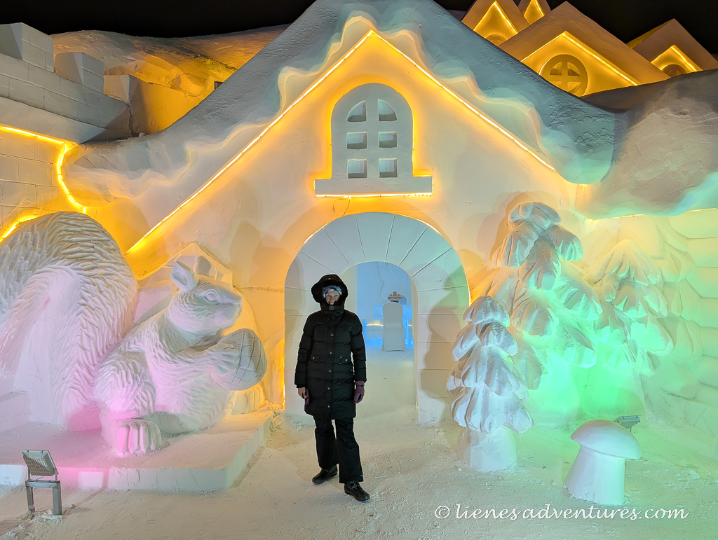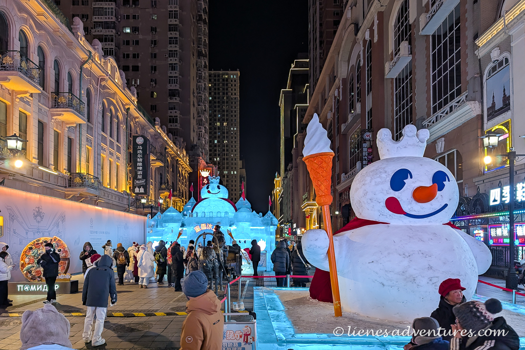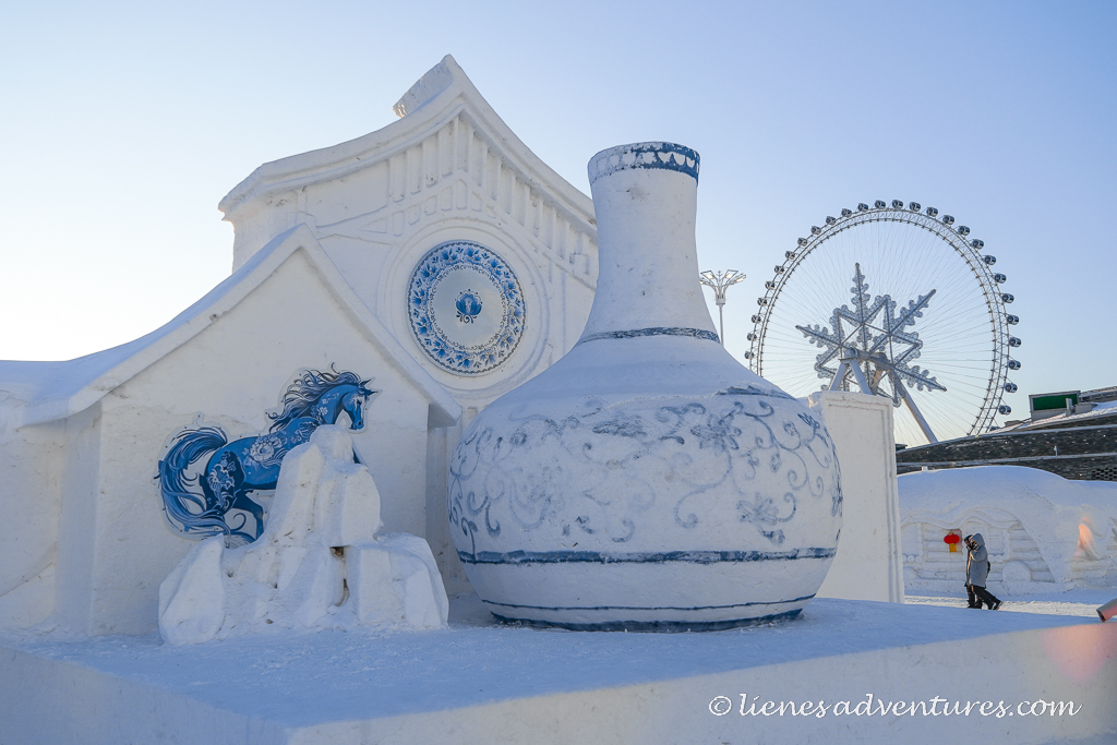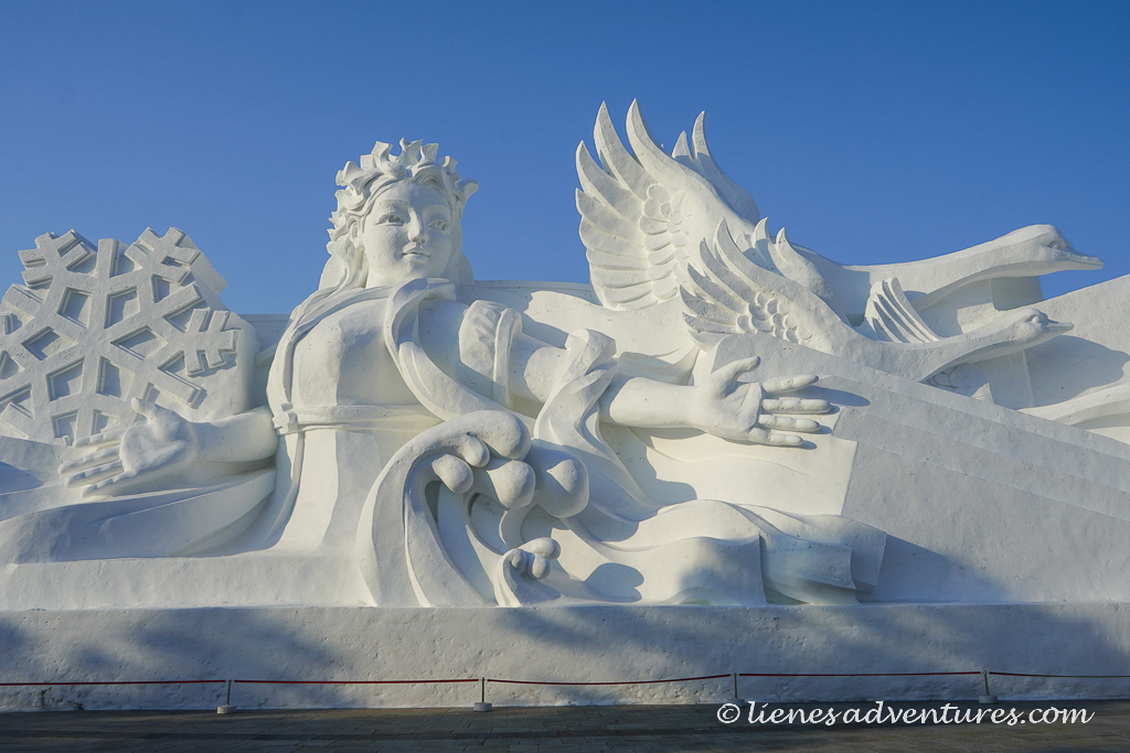 I have to mention that there were also a few snow sculptures here (not just ice) that visitors could see. However, the main Snow Sculpture Art Expo was happening elsewhere, which we would visit tomorrow. The organizers had displayed a few snow sculptures here for those who, possibly, could not attend all the events of the festival.