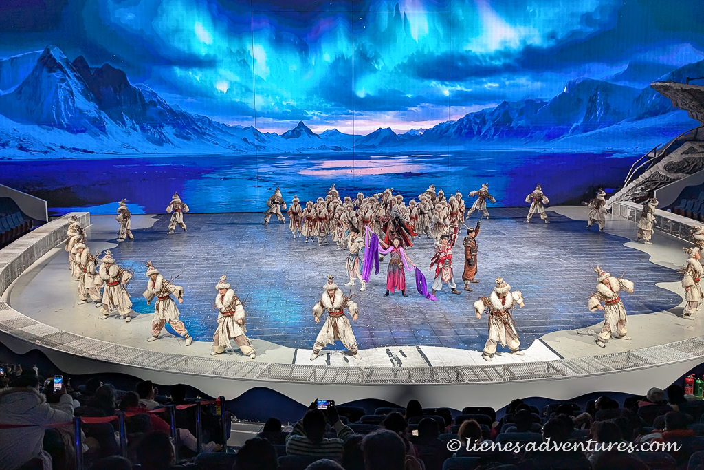 After we had wandered the grounds for nearly 3 hours, we lined up for an indoor show called “The King’s Chariot” that I had pre-booked for us. I figured this would be a great way to warm up a little bit, while also getting to see something new. Although we did not understand the Chinese dialogue, the visual effects and storyline made it easy to follow along. Overall, I would give the show 4 out of 5 stars because my boys said that the warriors didn’t fight enough and gave up way too easily. Agreed.