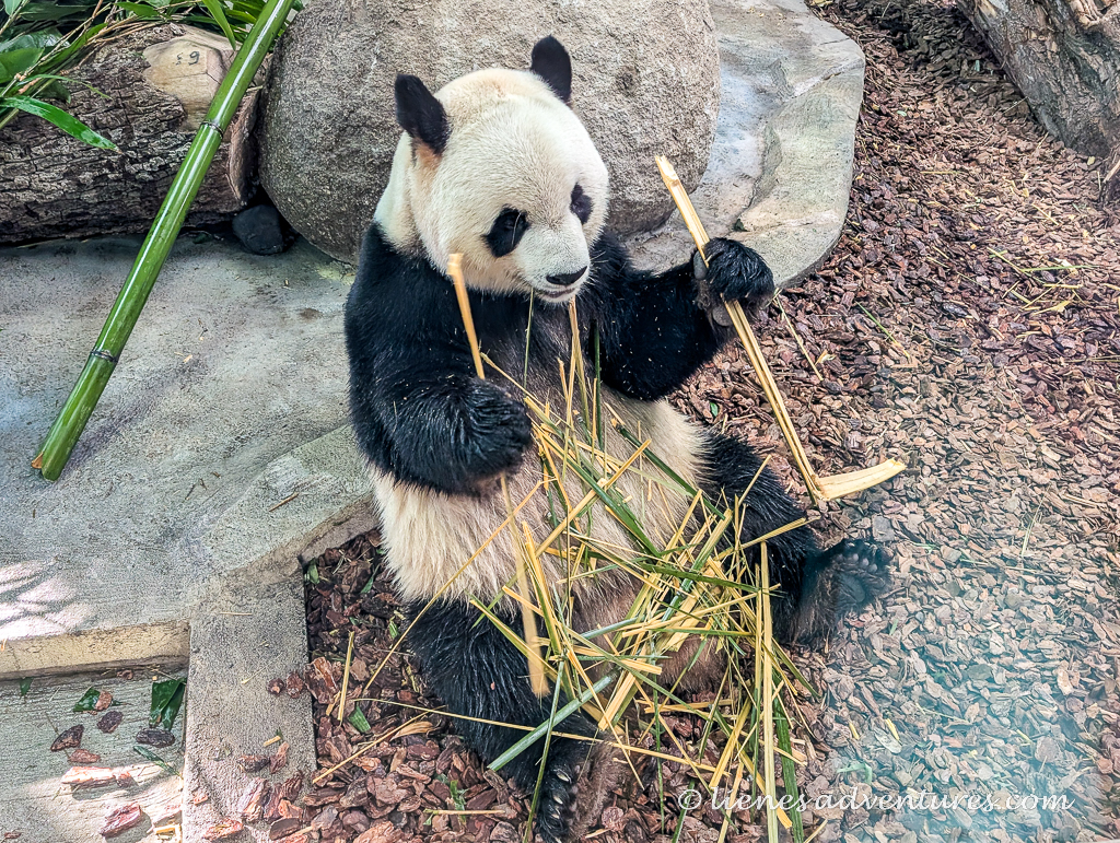 Speaking of pandas, I was not aware that Sun Island had a giant panda pavilion that opened here just a year prior in 2025. As we were walking around, we saw signs with QR codes inviting people to sign up for timed panda viewing. That is exactly what we did, and before leaving Sun Island, we went to see Zhi Shi and Zhi Ma – two pandas in their indoor winter exhibit. Although I had seen giant pandas before in a few zoos, it was very special to meet them right here in China, which was their true home.