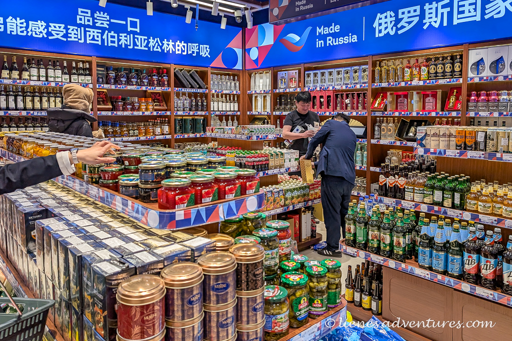 This central avenue was all cobblestone, lined with lots of old European-style architecture, hotels, shops, and restaurants. Surprisingly (or not?) Russian themed and “Made in Russia” shops were vastly represented here with many signs both in Mandarin and Russian. We even stopped to listen to a street musician performance – in Russian! Zhongyang felt more like a European street with heavy Russian influence.