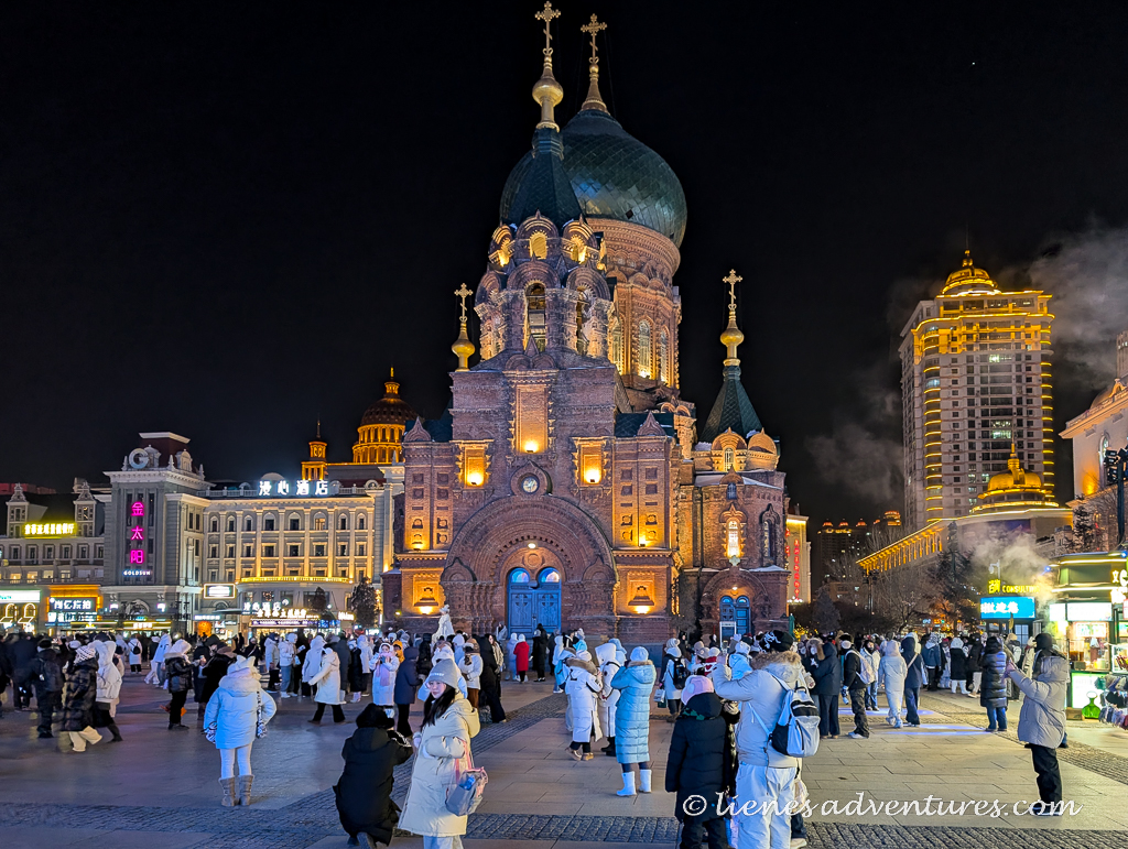 Also, it seemed that all the people had flocked to Zhongyang Street after other festival venues closed for the night. It was extremely crowded here! Probably the most crowded I had experienced out of any places we had visited in Harbin. And with night approaching, the temperature was dipping considerably, so visitors were drifting in and out of the stores and cafes that lined the street, just to warm up for a bit.