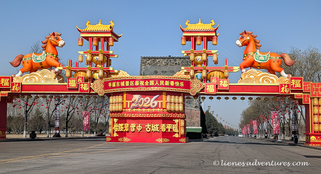 By noon, we had reached Pingyao which greeted all New Year’s visitors with a festive welcome sign! As the upcoming 2026 Chinese Zodiac year animal was going to be a Fire Horse, horses, appropriately, were represented on all the decorations and New Year's greetings.