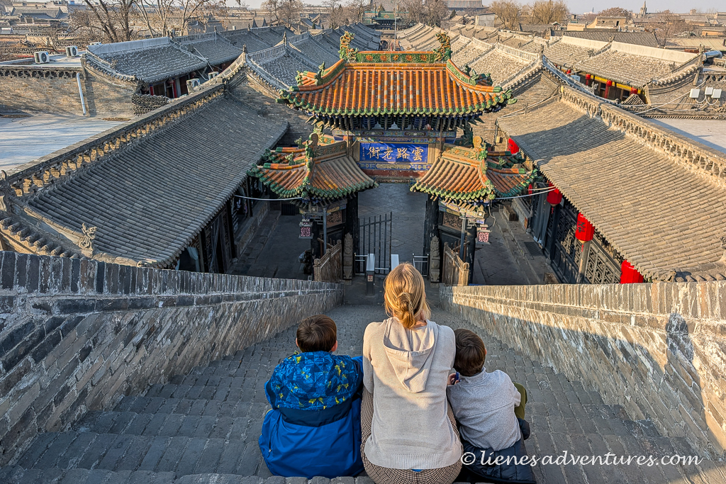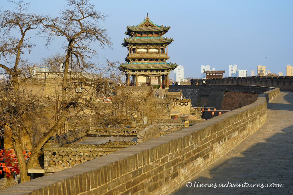 Being so high up, we had a great overview of not only the Ancient City but also the modern Pingyao with skyscrapers, traffic rush and busy market just on the outside of the wall. Those were like two completely different worlds.