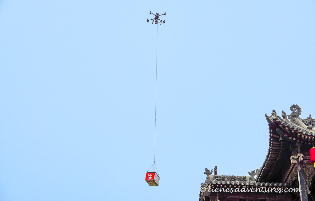 The most exciting part of the day for our boys was the drone delivery service that was available here. At the upper level of the compound was a pagoda with a little helipad and a QR code poster. Scanning the QR code brought up a menu, and the selected food or drink got delivered to the landing pad by a drone just a few minutes later. Those drones definitely kept busy as we saw them zooming back and forth pretty much non-stop.