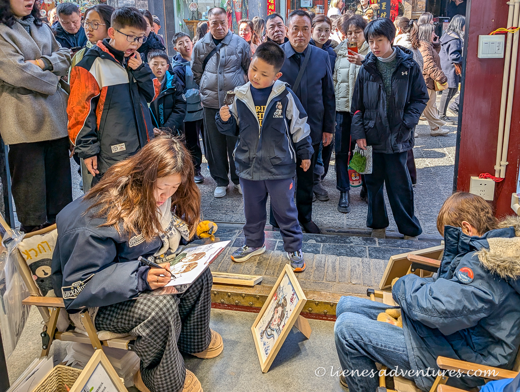 As we were making our way back towards the hotel, my husband noticed a hand-drawn portrait shop. He wanted to make a portrait of our boys as a souvenir from the trip. It was a cute idea (although the boys themselves didn’t quite think so), so we sat down. Drawing both their portraits took quite a while and, as usual, a street crowd gathered around to watch them.