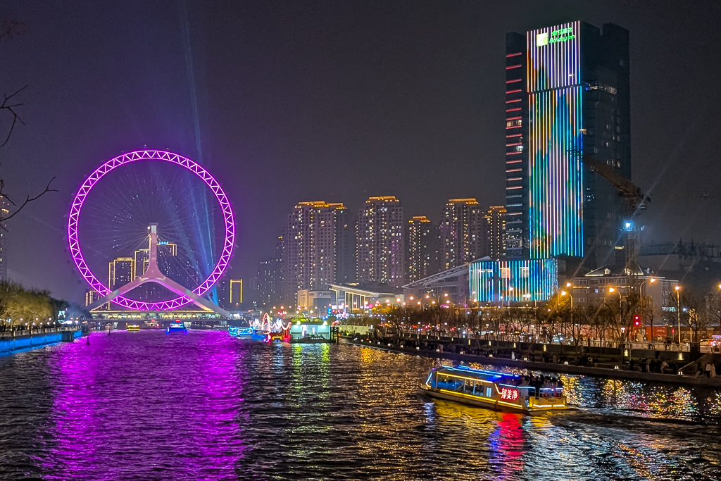 The main tourist areas had, surprisingly, become more crowded than they were during the day. As we were making our way back through the city in a Didi, we observed that lots of people were out to party. The skyscraper district was brightly lit up with many of the buildings displaying synchronized light shows. Everything was bright and colorful, including the Ferris wheel. Tianjin was definitely a place worth sticking around to until dark when everything seemed to light up and acquire a different vibe than during daytime.