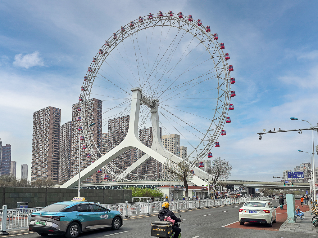 Having parked right next to the Tianjin Eye, we decided to start with that. Officially named The Tientsin Eye, it was a 120-meter (394 ft) tall giant Ferris wheel built above the Yongle Bridge. The wheel opened to the public in 2008. A fun fact - at the time of its completion in 2008, there were only 3 Ferris wheels in the world taller than this one. They were the 135m (443 ft) London Eye, 160m (525 ft) Star of Nanchang, and 165 m (541 ft) Singapore Flyer. Now, in 2026, Tianjin Eye is the 10th tallest Ferris wheel in the world.