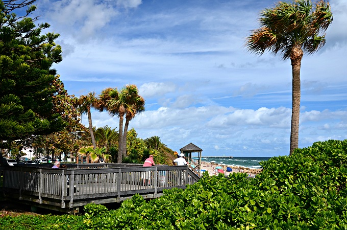 Šis ir ziemas rezidenču rajons, ar lielu skaitu vietējo iedzīvotāju, bet netrūkst arī savs pulciņš tūristu un viesnīcu. Atmosfēra šeit ir daudz mājīgāka un ģimeniskāka nekā, piemēram, Maiami pludmalē vai Fort Lauderdale, kur pārsvarā uzturas tūristi. Var iet pastaigā gan pa pašām pludmales smiltīm, gan pa blakus izveidoto asfaltēto celiņu, kas vijās līdz pašam Deerfield Beach centram, kur atrodami gan suvenīru veikaliņi, gan restorāni, gan klimatam atbilstošas iestādes – saldējumu kafejnīcas! Šis pastaigu celiņš kļuva par mūsu ikvakara nodarbi, jo pēc mājā nosēdētiem vairākiem ziemas mēnešiem Pensilvānijā, bija tik patīkami beidzot atrasties ārā, neraizējoties par nosalušiem pirkstiem un deguniem!
