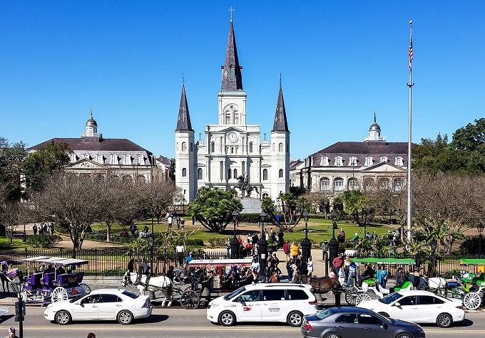 Early in the morning, we received a mass text message from NCL informing passengers that check-in for the cruise will not start before 1PM and they are asking passengers not to come to the port terminal before this time. That gave us a few hours to spare in the morning. We parked our car at the cruise port car parking and decided to walk into New Orleans French Quarter to get some coffee and beignets at Café du Monde. We have made several extended trips to New Orleans before, so all the sights were well known and weren’t a priority this time around. But it was still nice to have a long walk, enjoying sunny, warm weather (while it was sleet and wet snow back home).