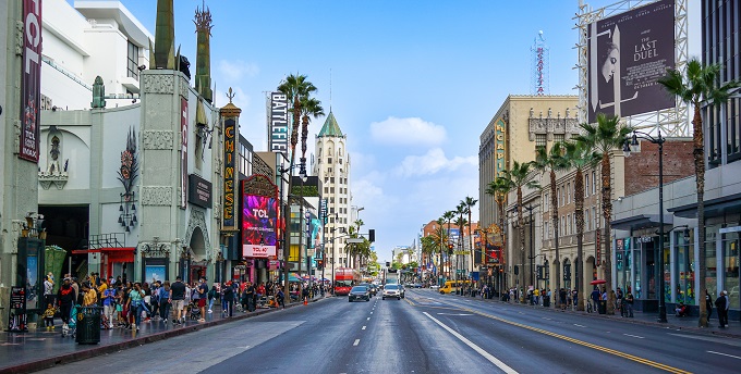 The Hollywood Walk of Fame comprises more than 2700 stars embedded in walkways across 15 city blocks to commemorate achievements of various entertainment industry figures from past to present – actors, musicians, producers, radio show hosts etc. It has been a tradition since 1960.